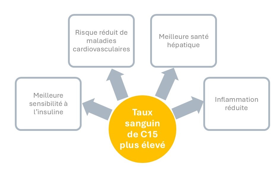 Le C15 est l’un des activateurs des récepteurs PPAR qui, sous son impulsion, disent à la cellule « brûle plus de gras » ou « réduis l’inflammation » ou « améliore ta sensibilité à l’insuline » selon les besoins de l’organisme.